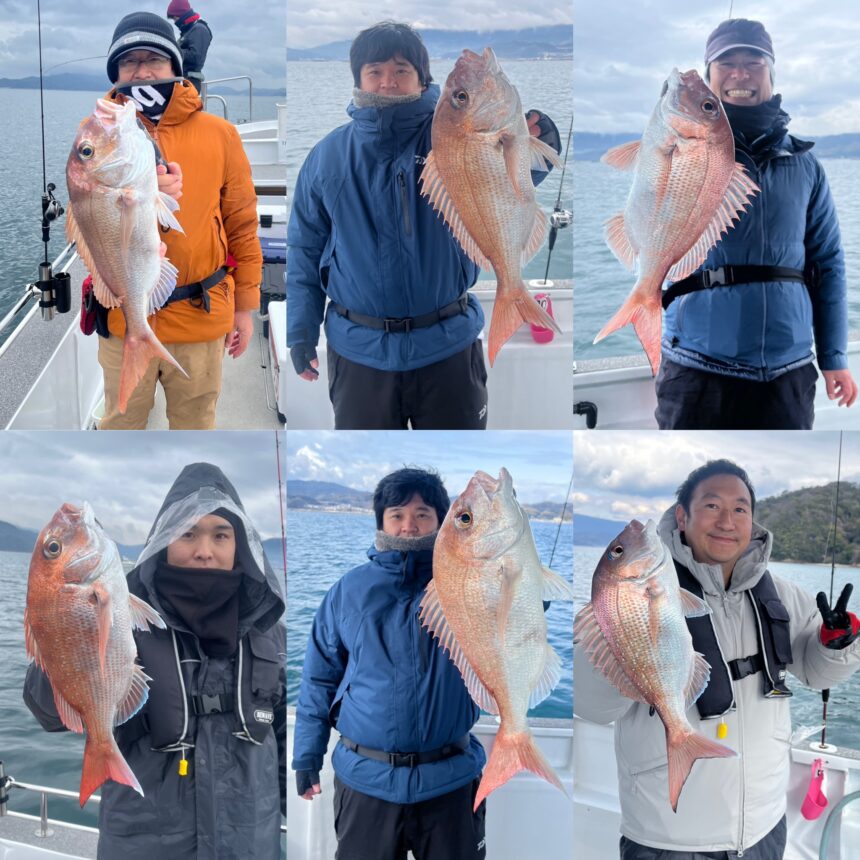 厳寒期プラス潮位差が40cmと厳しい状況下でしたが、35cmから53cmまでのマダイをポツリ・ポツリ釣って頂きました😁